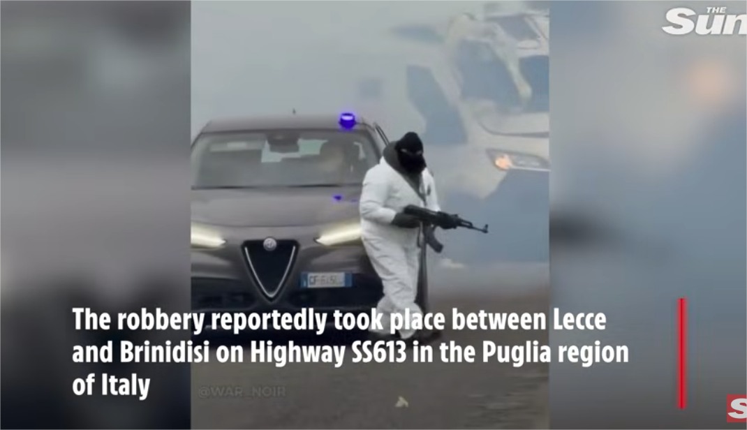 イタリアの高速道路で白昼堂々、映画ばりの現金輸送車襲撃強盗が発生